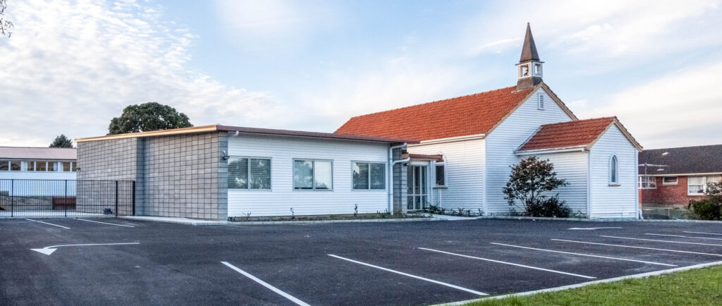 The church is located between 11 Hastings Road and 10 Penzance Road in Mairangi Bay, Auckland.